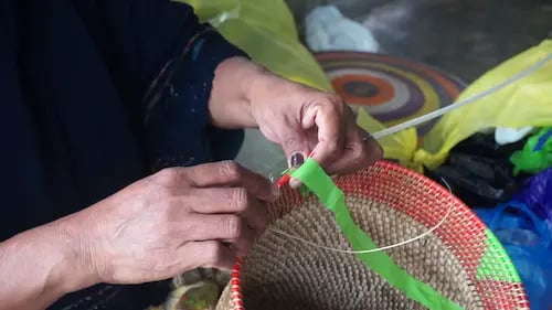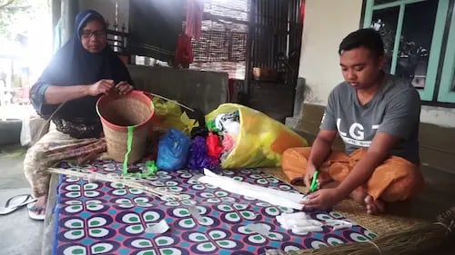 Transforming plastic bag trashes into traditional crafts and arts of Lombok.